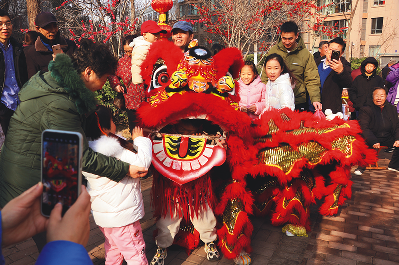 ⑦近日,中铁十局城市运营公司济南分公司中铁汇苑项目部举办“寻味中国年·烟火暖邻里”年味大集活动。活动集文化展示、便民服务、公益践行于一体,吸引700多居民踊跃参与。图为舞狮文化展示。 王鑫燕 摄
