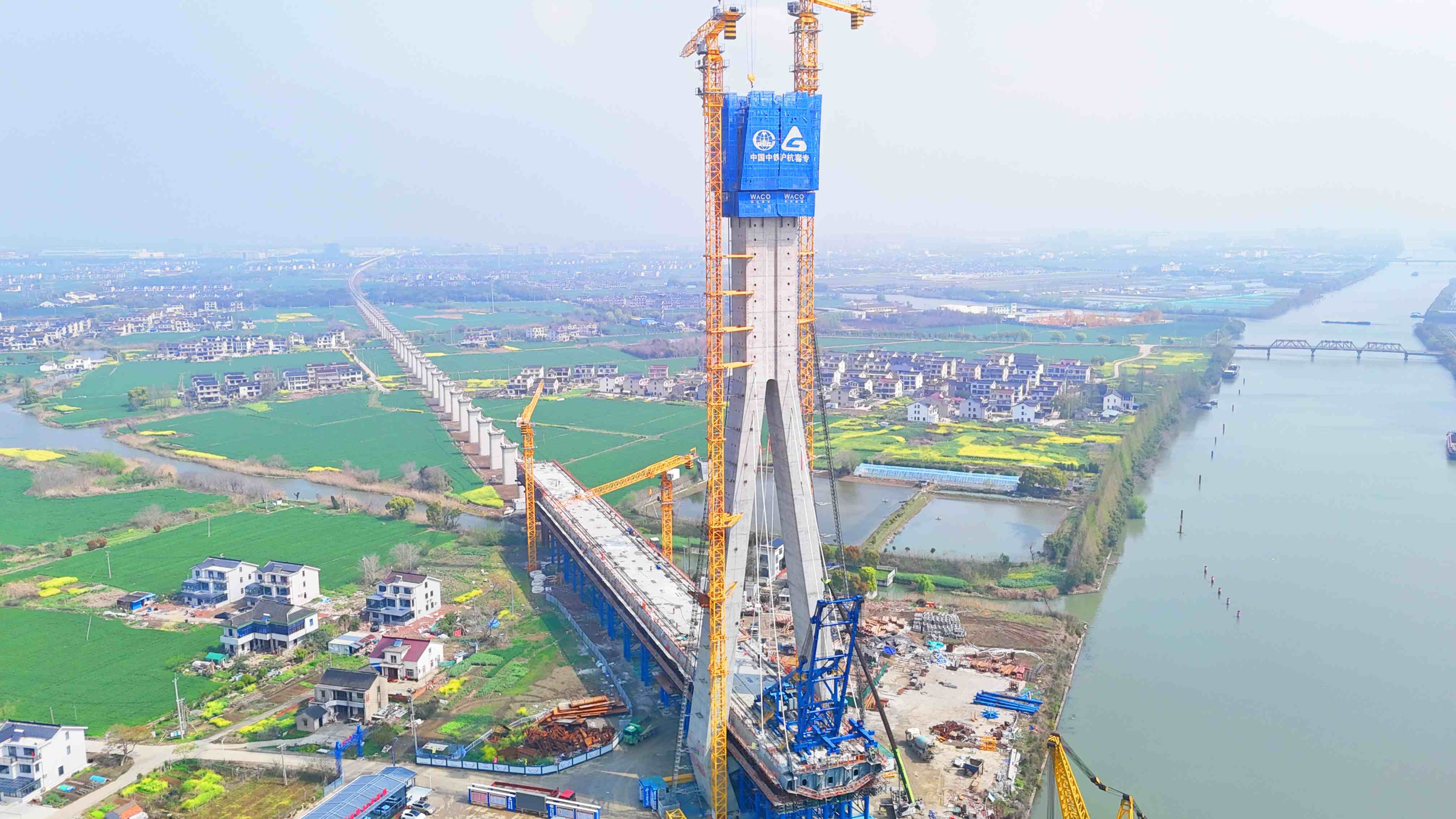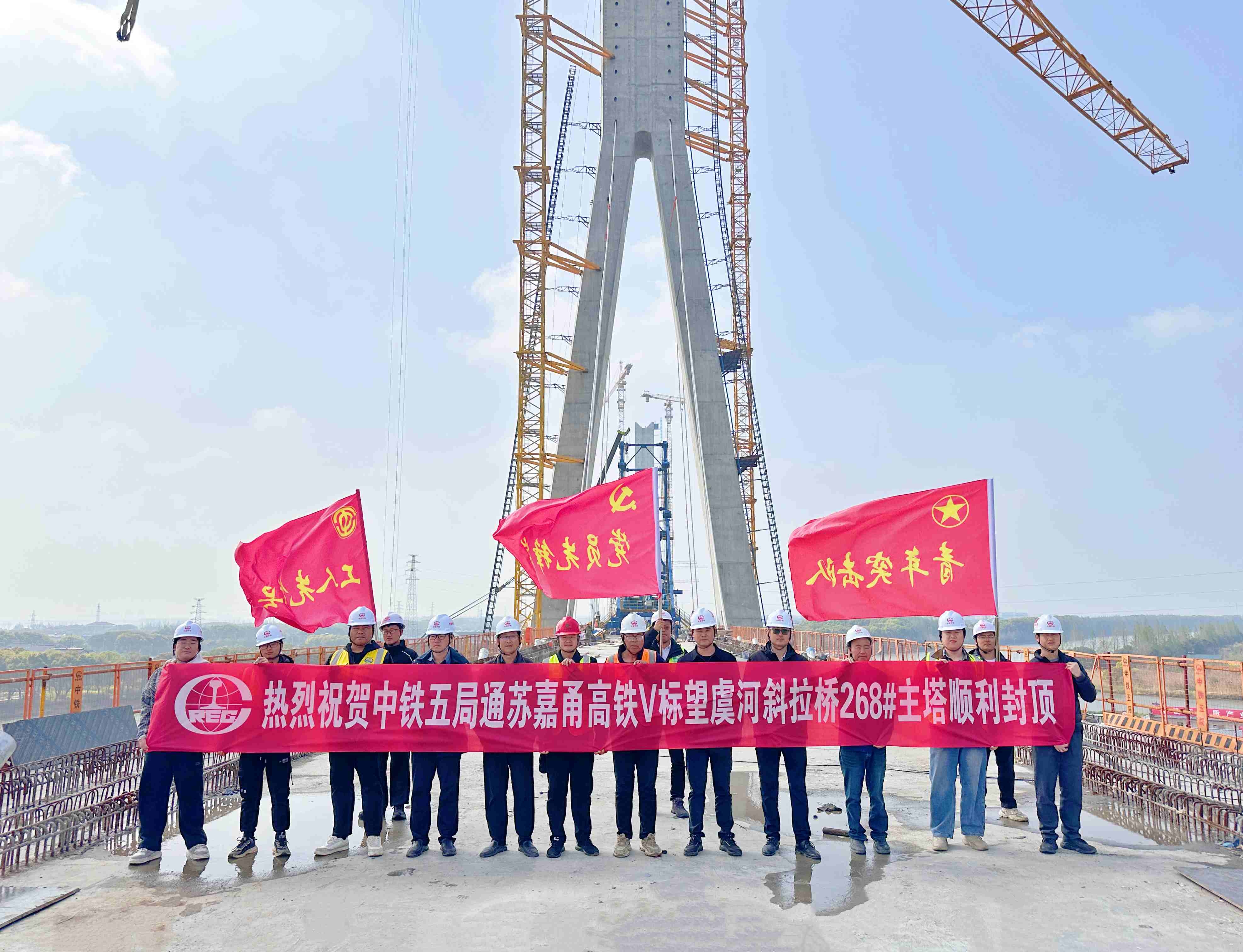 4月4日,mk体育旗下中铁五局承建的新建南通至宁波高速铁路(简称通甬高铁)望虞河斜拉桥268号主塔顺利封顶。