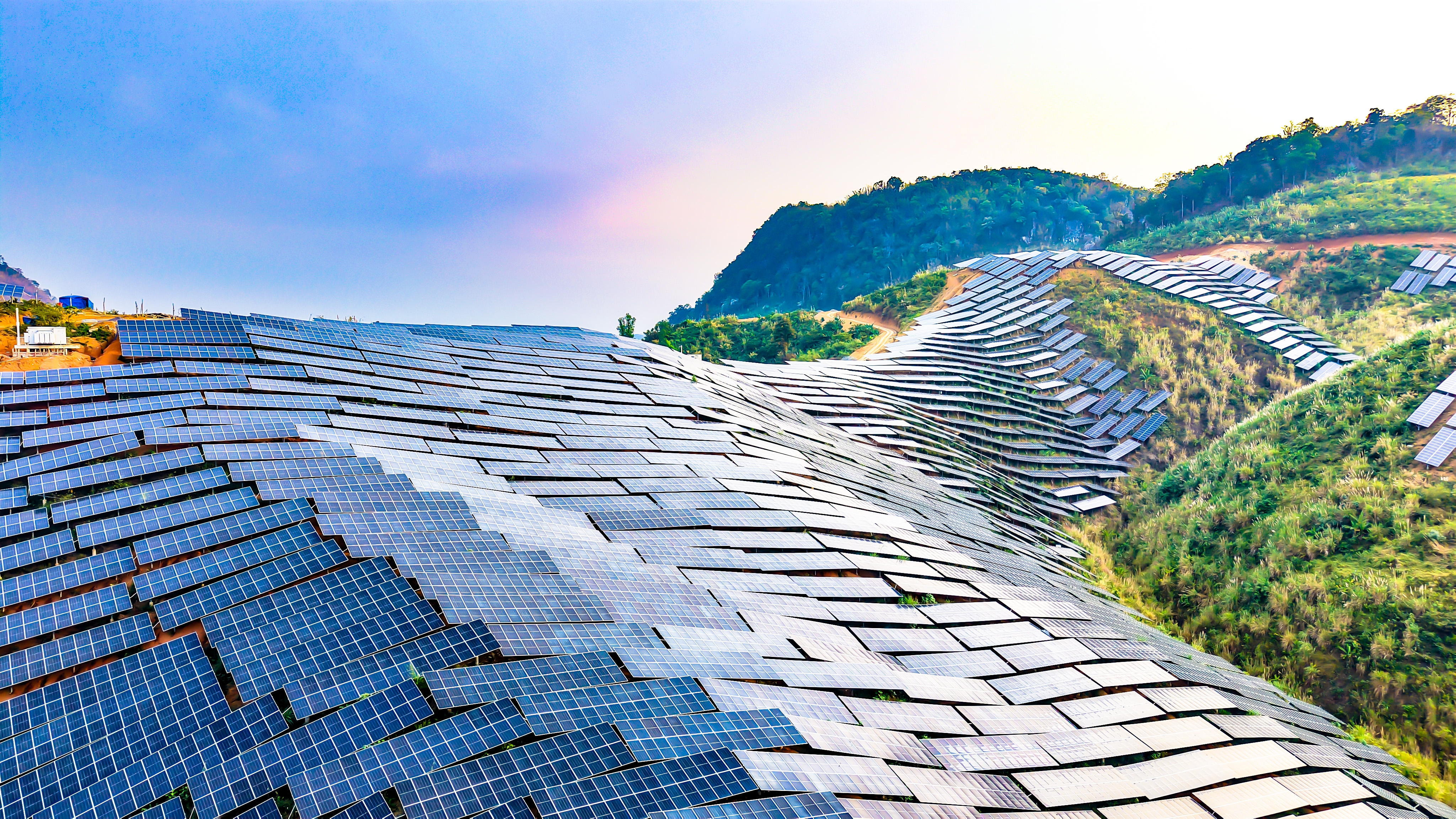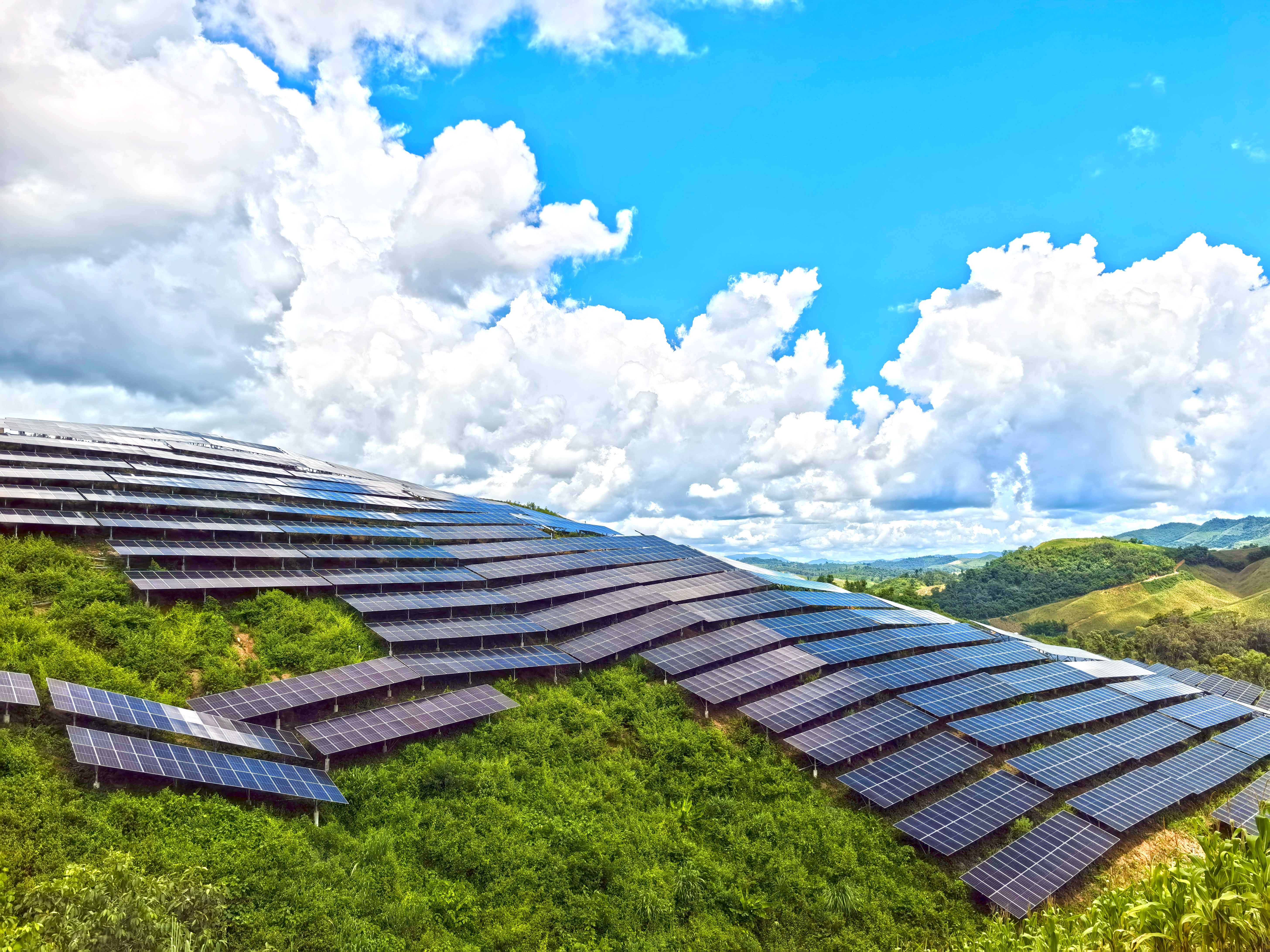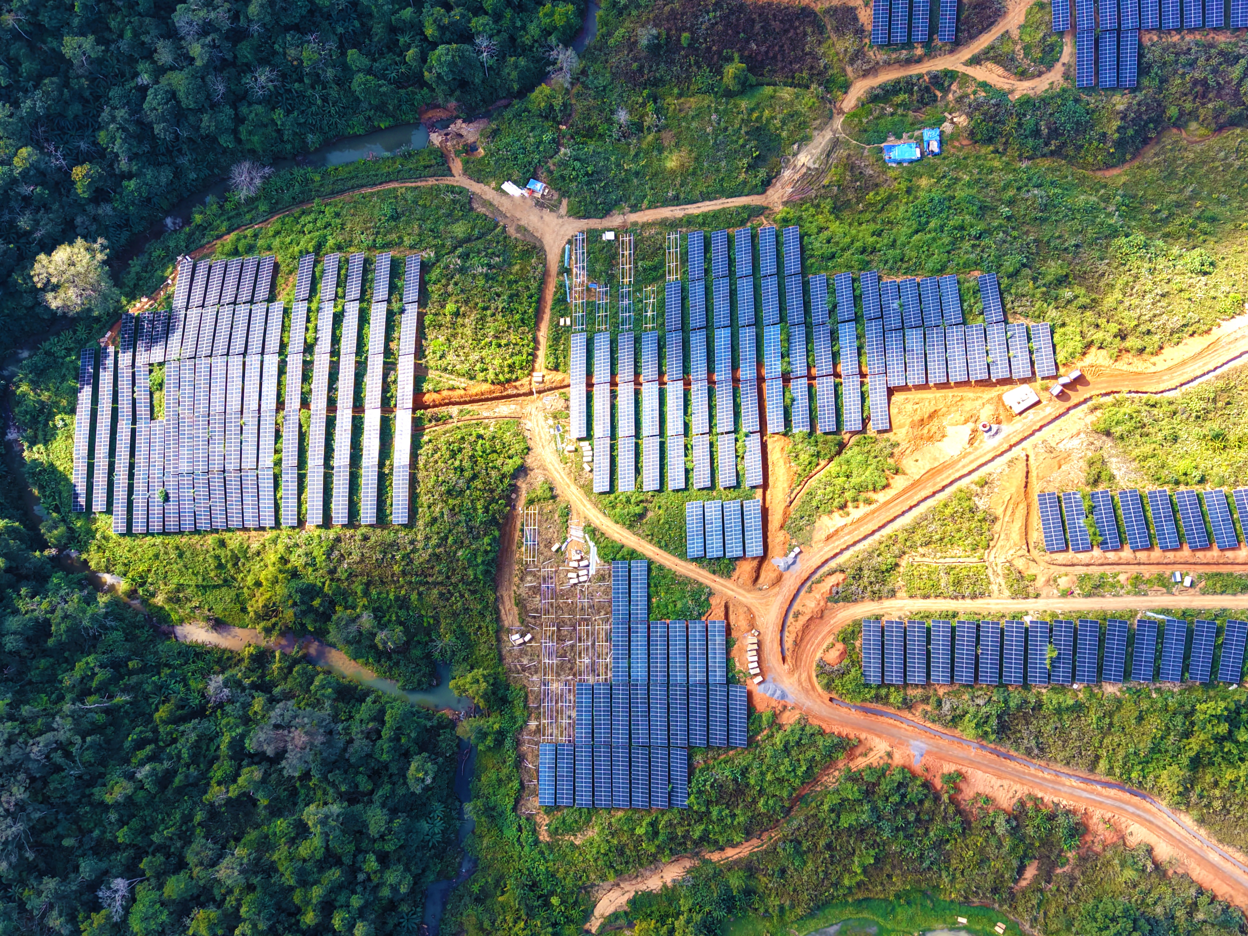 该项目是中老电力互联互通的支撑电源,也是老挝首个大型山地光伏项目,位于老挝乌多姆塞省,距中国磨憨口岸38公里,一期规划装机1000兆瓦。中铁二局承担该项目300兆瓦施工任务,涵盖64个方阵的光伏组件安装、调试及道路附属工程。