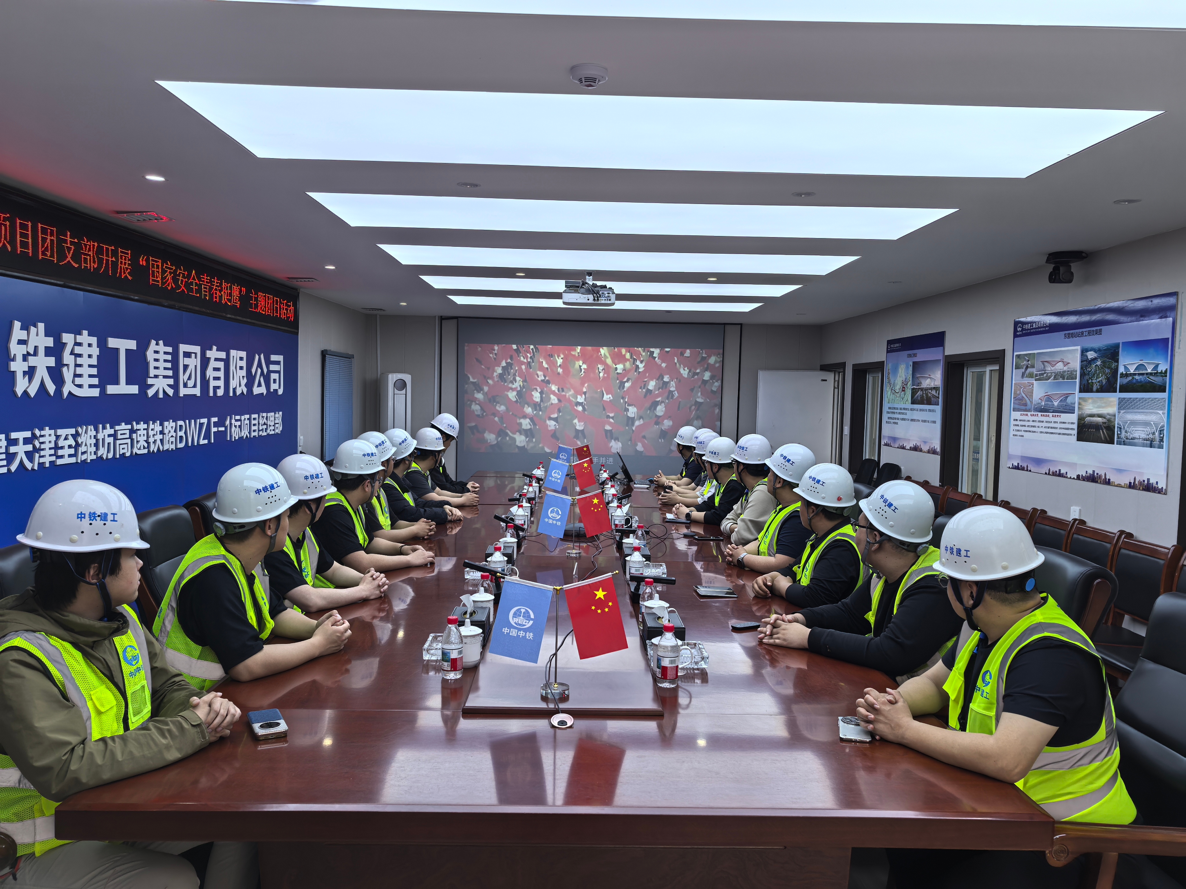 4月14日,中铁建工津潍高铁东营南站项目团支部开展“国家安全 青春挺膺”主题团日活动,全体青年团员共同学习总体国家安全观核心要义,观看国家安全警示教育专题片。(傅春晓)